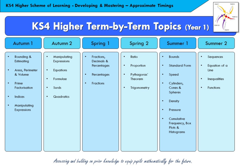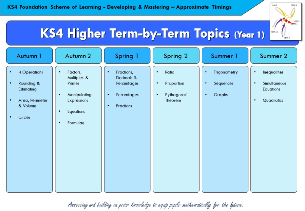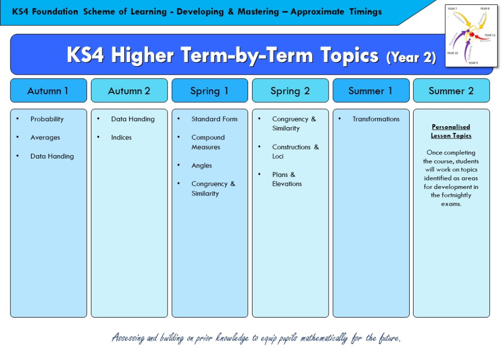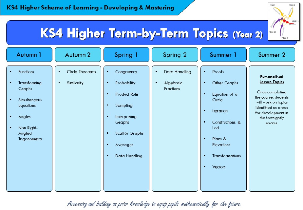 During KS4, we want to equip students with the necessary knowledge and support to achieve outstanding GCSE results as well as preparing them to continue their mathematics education as they move to college and beyond.