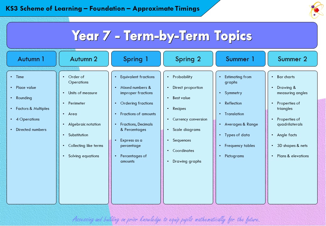 In Year 7 – 9, the scheme focuses on deeper understanding for learners. The curriculum is designed to build upon prior knowledge, revisiting topics in greater depth each year, gradually increasing in difficulty allowing students to secure their knowledge whilst building a deeper understanding. We want students at KS3 to build their confidence with the areas of mathematics that will help them to transition into their GCSE years at KS4, as well as developing a love of mathematics.